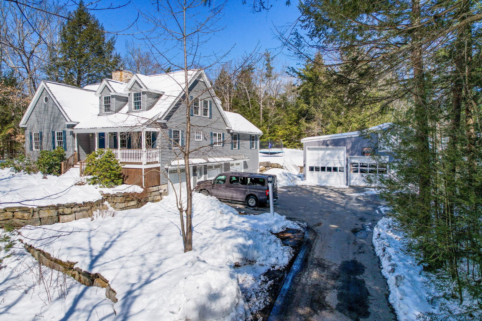 This custom built Cape style home in desirable Poplin Acres. This well maintained home sits on just over an acre of land and offers 4 Bedrooms, 2 ½ baths, 3 car garage with an additional detached 2 Bay 42x37 heated garage has an oversize bay for a boat or an RV. Sip your morning coffee relaxing on the front Farmers porch. The Main level has beautiful Hickory flooring, Chef’s dream kitchen, granite countertops, slate tile backsplash, tons of cabinet space, open concept to the family room with soaring cathedral ceilings and an amazing fieldstone gas fireplace, perfect spot for entertaining family and friends. Spacious Formal dining area with another spectacular gas fireplace. Work from home?? You’ll enjoy the large office space with custom built bookshelves and desk area. Loads of space in the laundry room. Half Bath, First floor master suite with your own private bath get away from it all in the soaking tub, granite countertops, walking shower with a walk in closet and a secondary closet. Second level has birch hardwood flooring with 3 generous Bedrooms; one of the bedrooms has a walk in closet. Also a bonus room for whatever your heart desires. A full bath with tile floor and granite countertop. Down to the lower level has so so much storage space… Large mud room with built in shoe rack and sitting area. Cedar closet, Water filtration system, Generator ready Seller to find suitable housing of their choice. Showing start at Open House March 25th and March 26th 12 to 2pm.